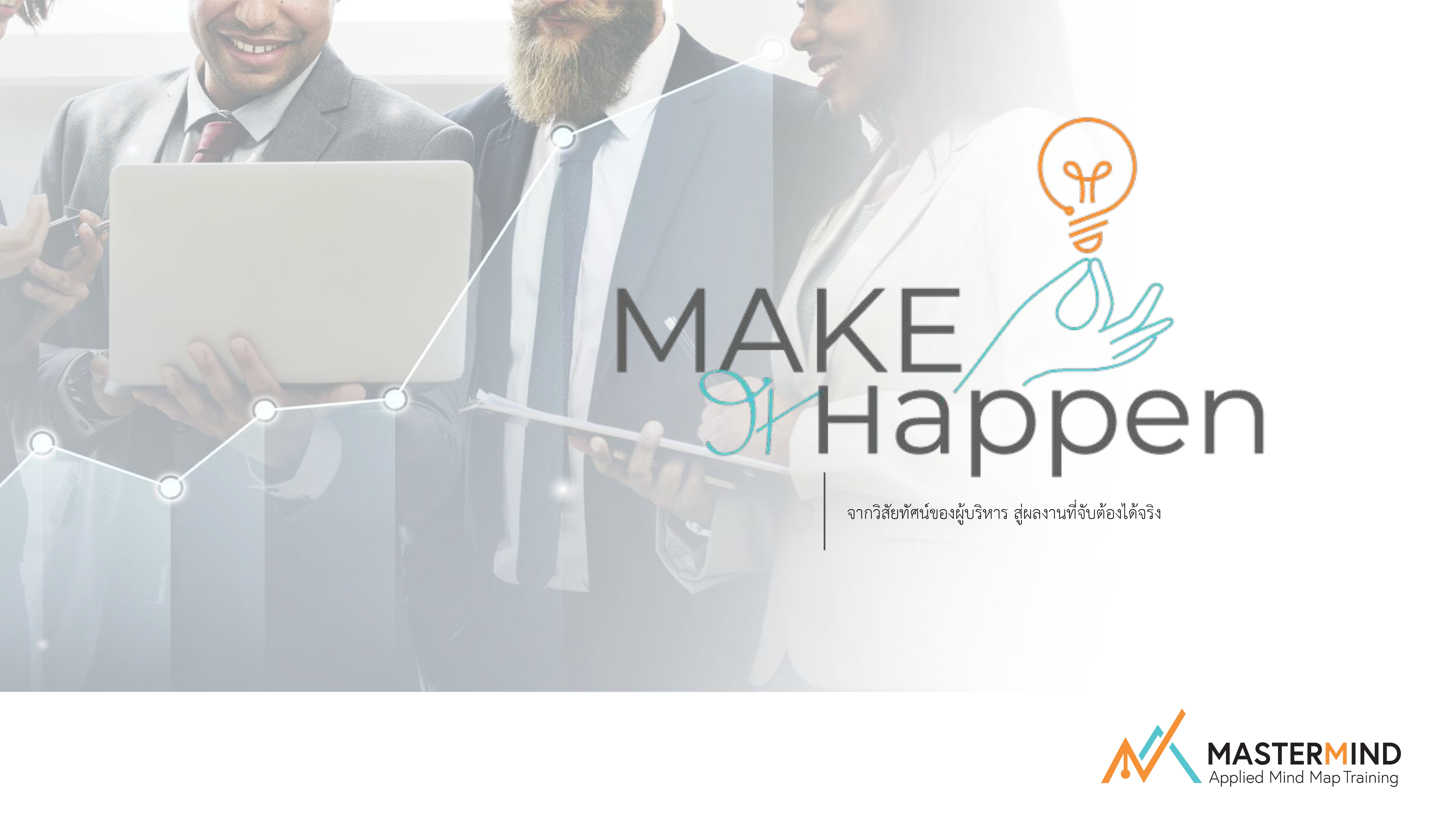 หลักสูตร Make It Happen เน้นฝึกทักษะการ clarify & define เพื่อระบุถึงปัญหา เป้าหมายระยะสั้นและเป้าหมายแท้จริงในระยะยาว ให้ชัดเจน ซึ่งเป็นขั้นตอนสำคัญมาก ที่หลายคนมักมองข้าม ทำให้เสียเวลา เสียโอกาส และสิ้นเปลืองทรัพยากรเกินจำเป็น และผลลัพธ์ที่ได้อาจจะไม่ตอบโจทย์ที่แท้จริง